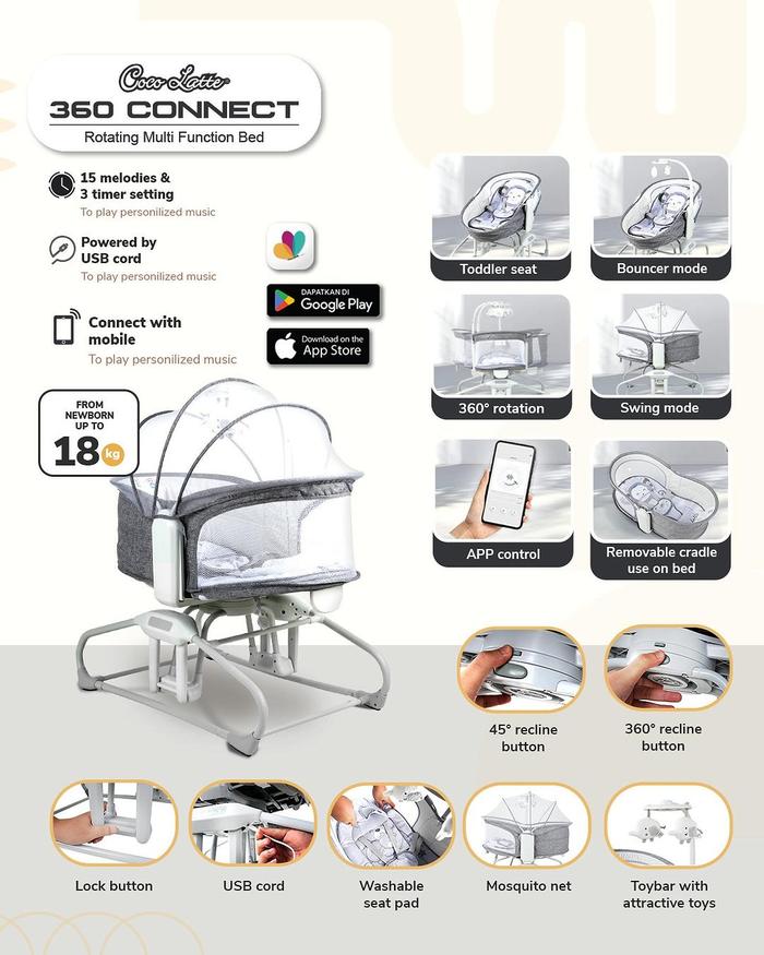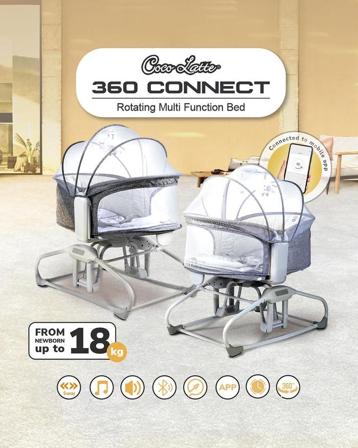 Ayunan Bayi CocoLatte Connect 360 Bedside Side Bed Bassinet Rocker Toddler Mommy