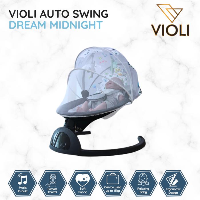 Violi Dream Midnight : Grey Auto Swing - Bouncer Bayi Ayunan Otomatis Bayi