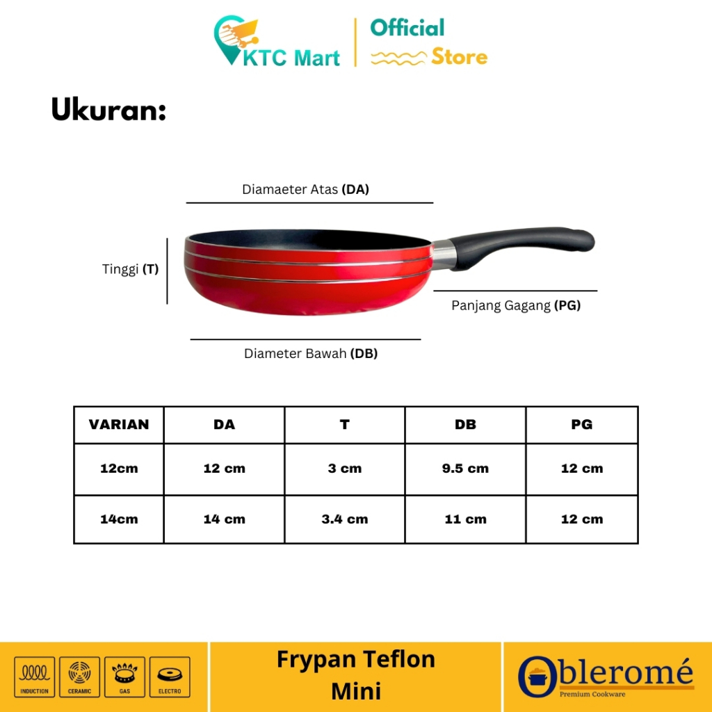 KTCmart - OBLEROME Frypan MINI TERLARIS / Teflon Goreng / Teflon Masak/ Anti Lengket
