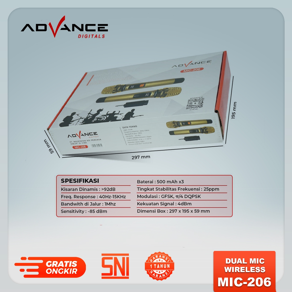 Advance MIC-206 Double Microphone Wireless UHF Recharger Bisa digunakan untuk Souncard/Speaker