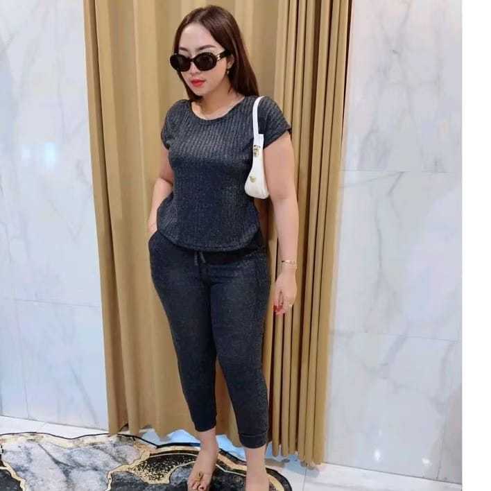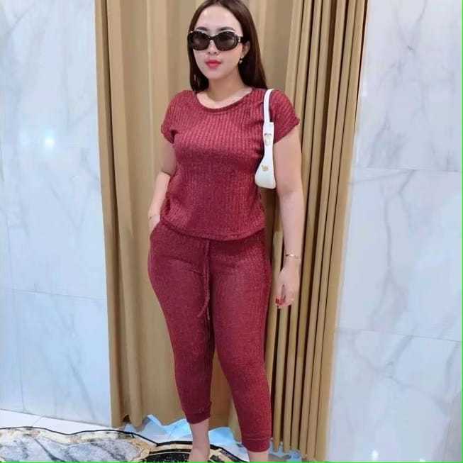 Promo..!!! Rissa Set wanita Motif Polos Material Rib Knite Setelan Knite Terbaru