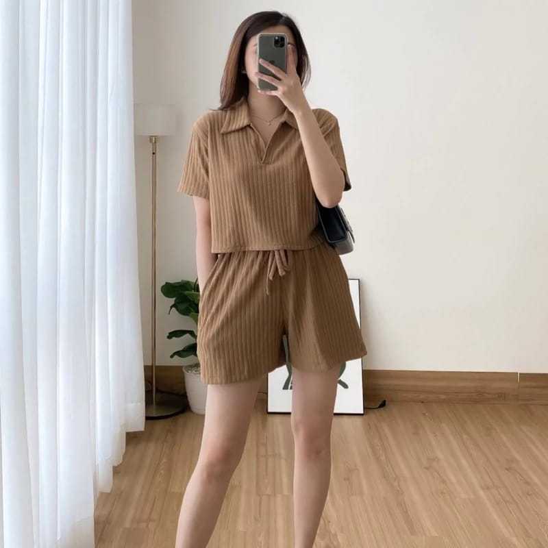 Shamela Fashion - SIERA SETELAN CROP ONESET HORNET WANITA PREMIUM TERMURAH KNIT ONE SET