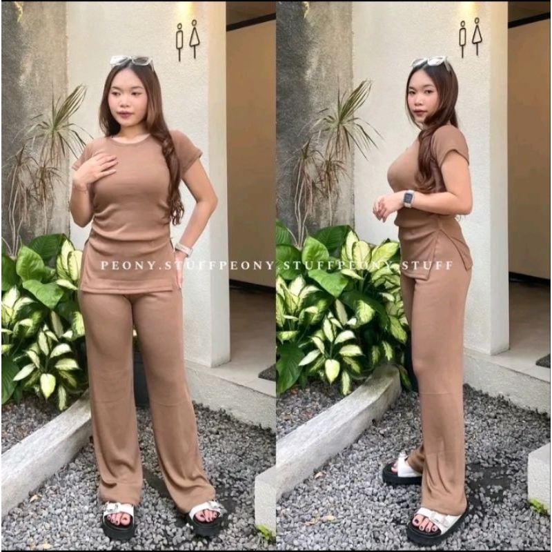 penelope one set knit rib wanita kekinian staylist/ setelan santai ootd