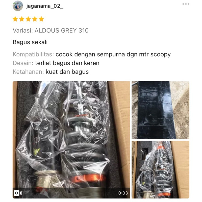 Shock Belakang Tabung Matic 310mm 330mm Mio Beat Vario Scoopy Xeon Miom3 Vario 125 150 Dll Aldous Racing