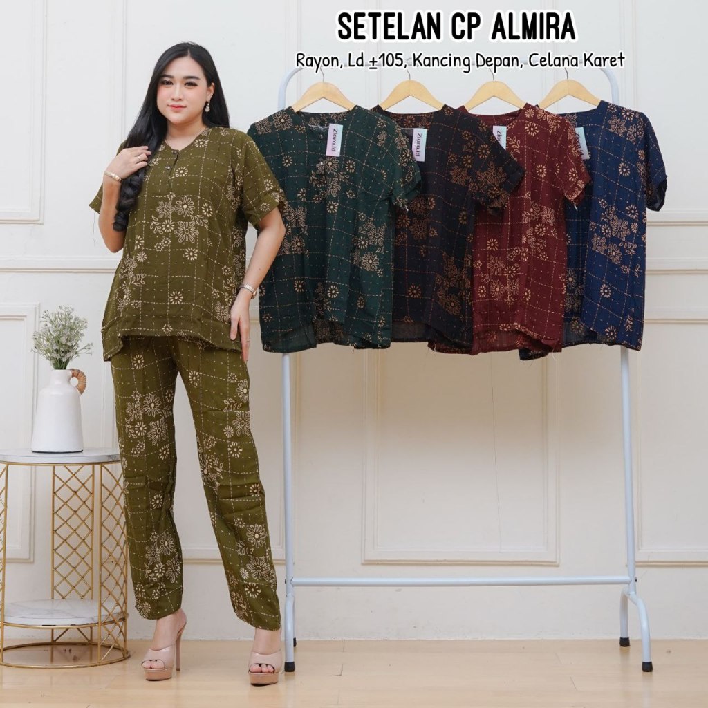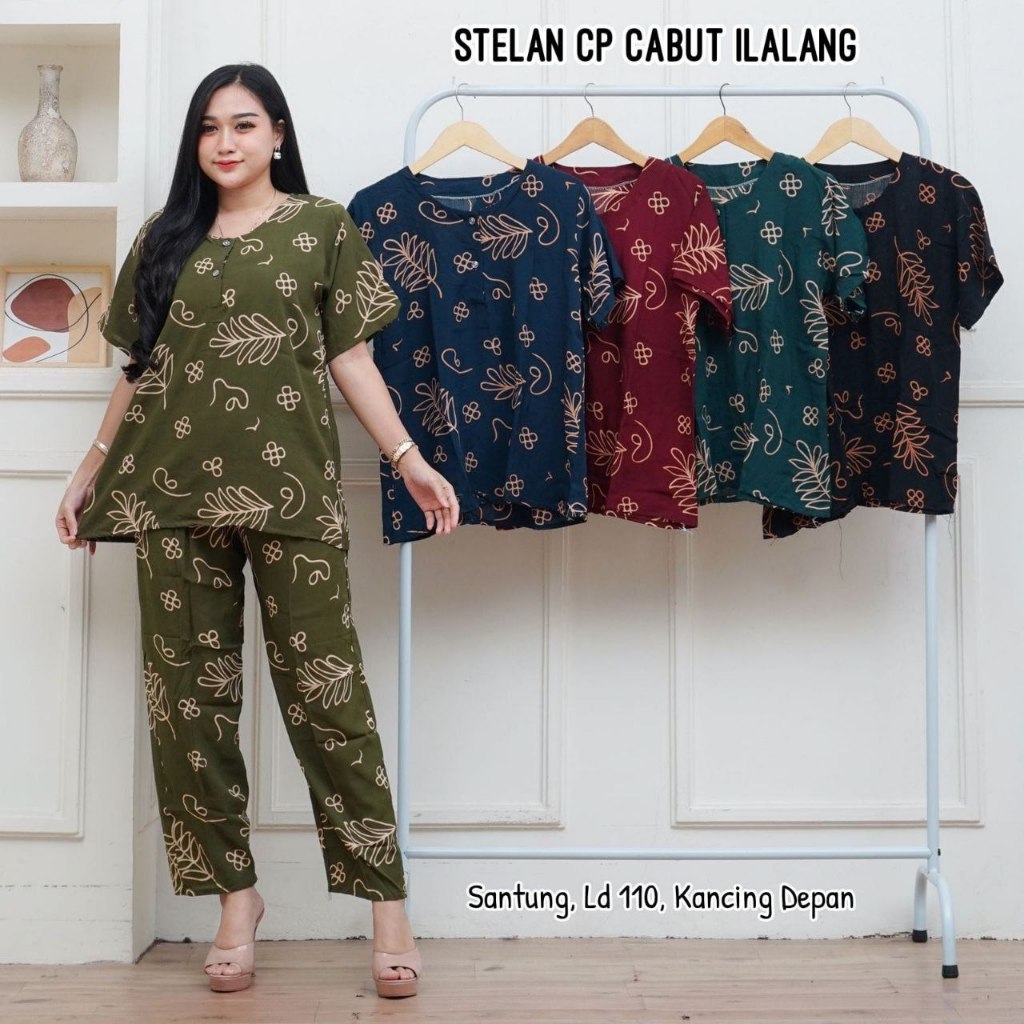 Bisa Pilih Warna One Set Piyama Setelan Celana Panjang Lengan Pendek Kancing Depan