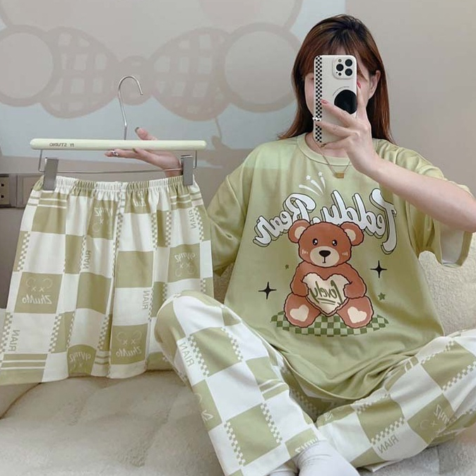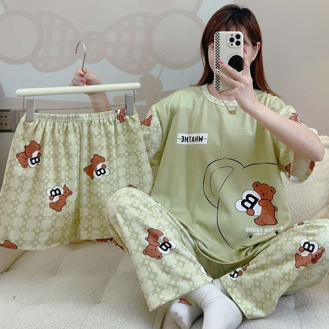 5XL Set Baju Tidur Wanita Dewasa Oversize Piyama Kaos Celana Panjang & Pendek Setelan Baju Tidur 3in1 / baju tidur