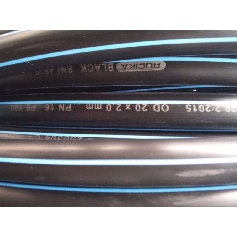 pipa hdpe/ selang air/ rucika PN 16/ ukuran 1/2 inch atau 20mm/ panjang 100 meter/ ORIGINAL 100 PERSEN BARU