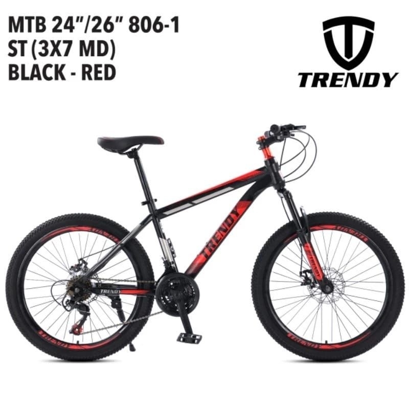 Sepeda MTB Ukuran 24 / 26 Trendy 806-1 Cakram 21 Speed Bearing Inner cable murah / Sepeda Gunung Ukuran 24 / 26 Trendy 8
