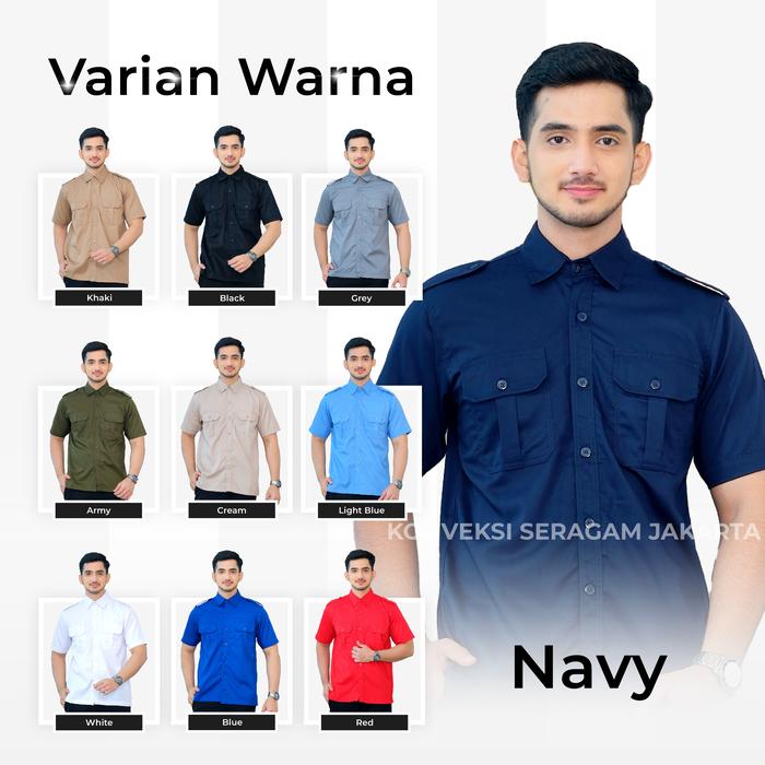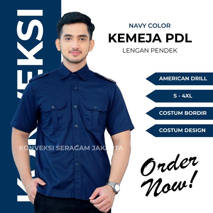 PDL Lengan Pendek Baju Kemeja Seragam Kerja Pakaian Dinas Lapangan Navy Bordir Kemeja Pria Lengan