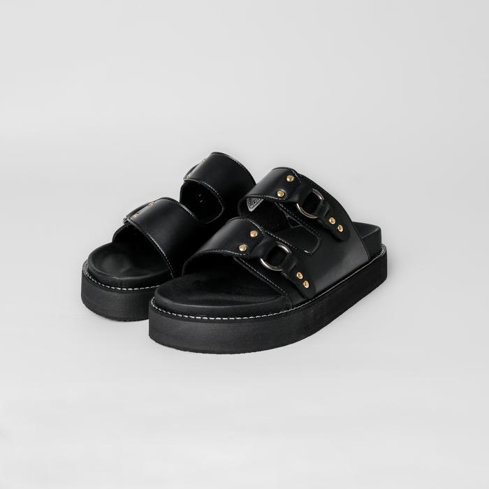 Pamole - Sandal Wanita Kekinian Sendal Cewek Sandal Flat - Zava Series - Hitam, 36