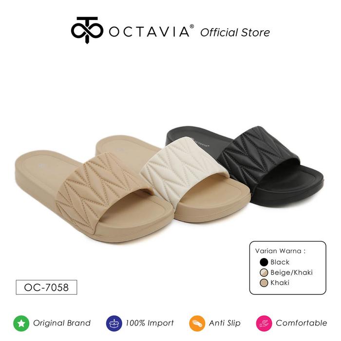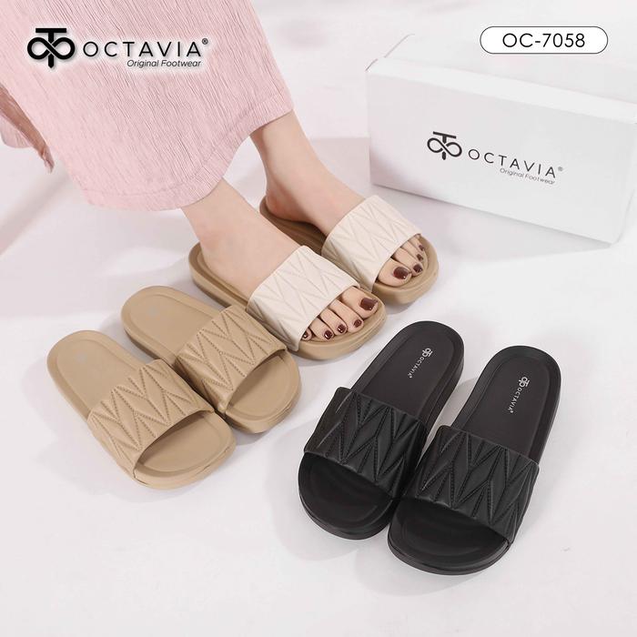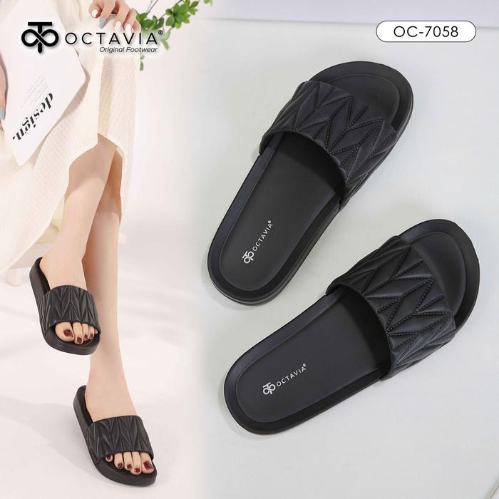 OCTAVIA Sandal Slide Slip On Wanita #OC-7058 (FREE BOX) - Black, 36 = 23 cm