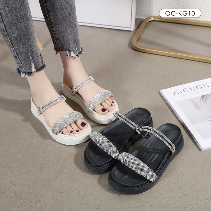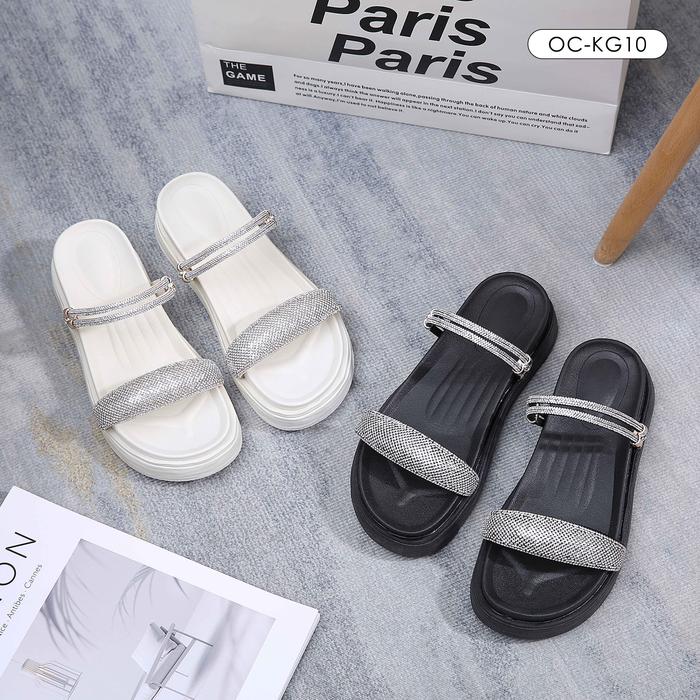 OCTAVIA Sandal Slide Two-Straps Wanita #OC-KG10 - Black, 36