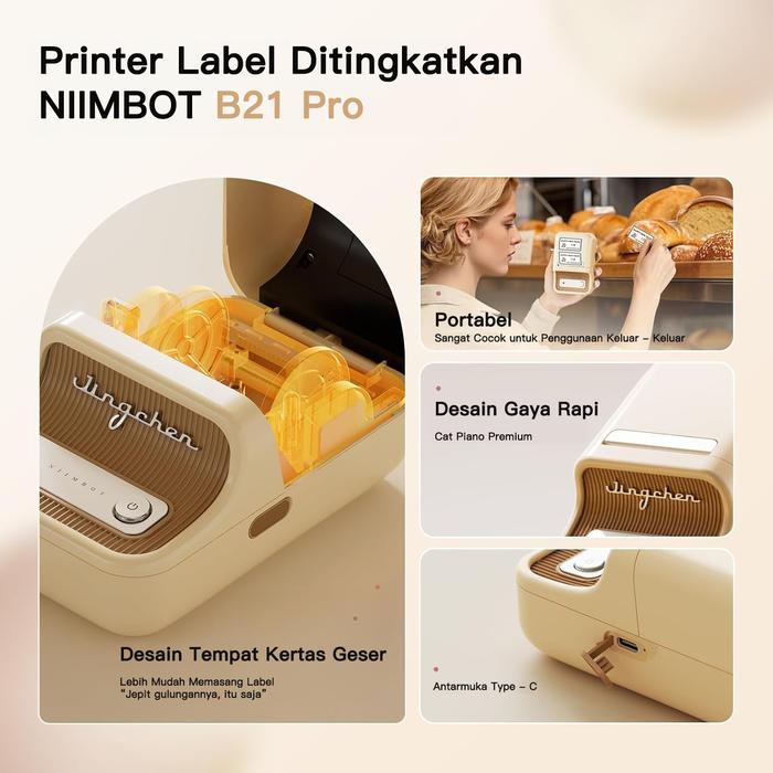 NIIMBOT B21 B1 Pencetak Label Termal, Printer Label Portabel Bluetooth Tanpa Tinta dengan