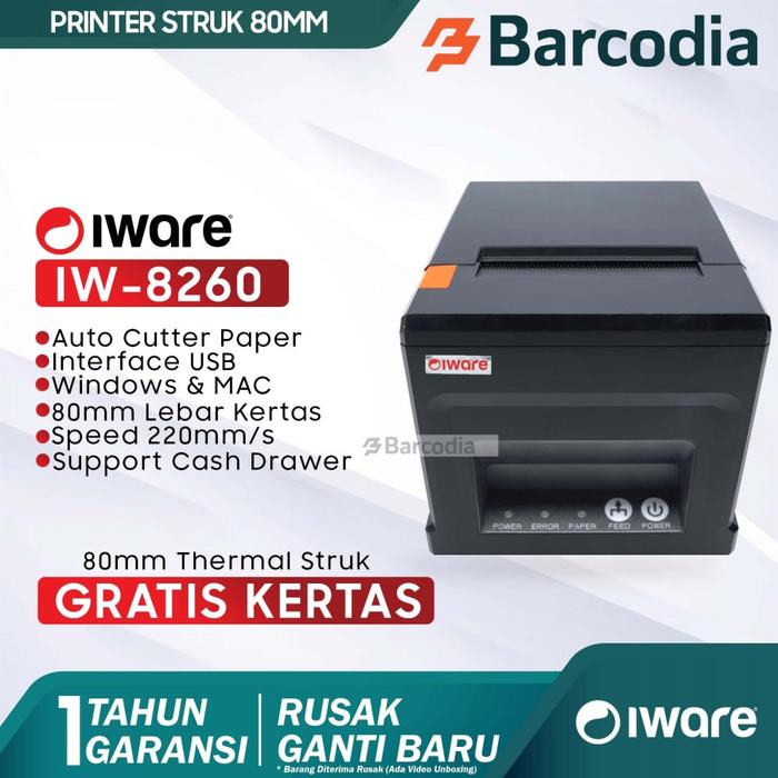 IWARE IW-8260 Printer Thermal Struk 80mm USB Wired Auto Cutter RJ11