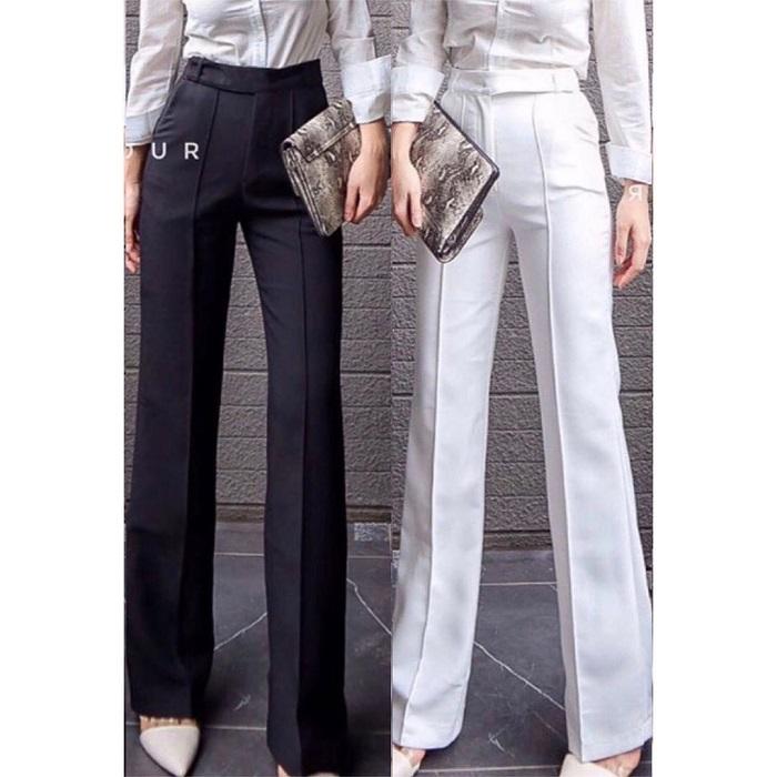 KULOT LIST BAHAN SCUBA / KULOT SCUBA Celana Karet Panjang Wanita Basic Casual Hitam Cewek Kerja Formal