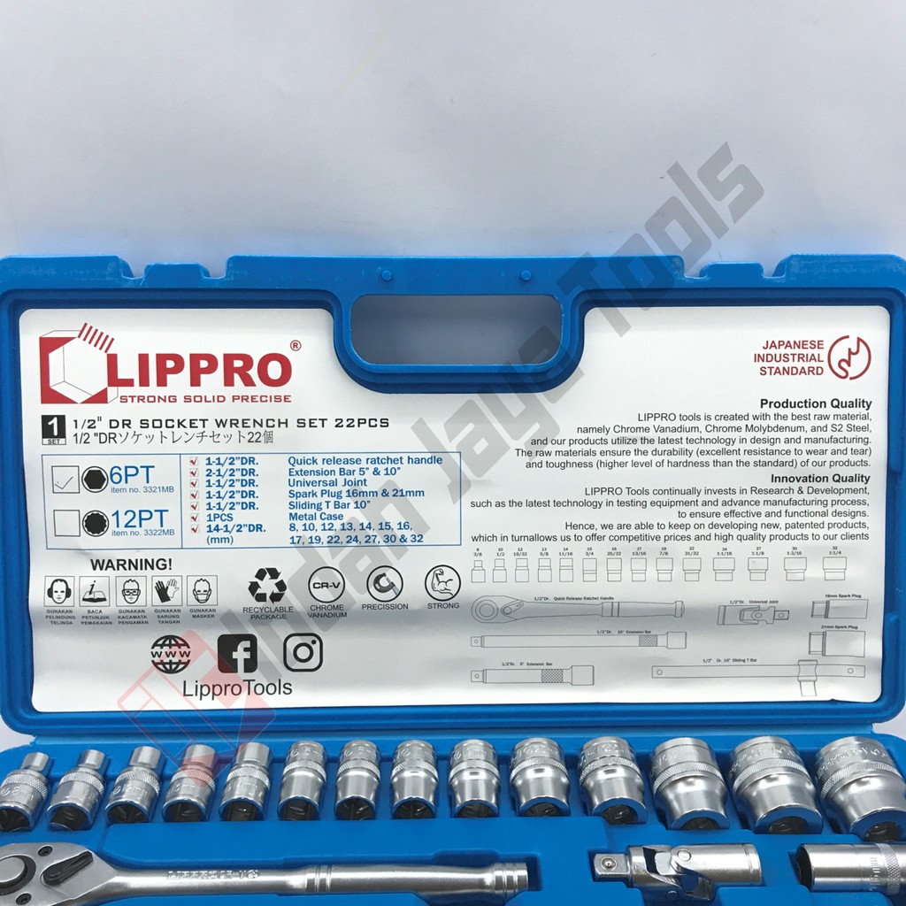 LIPPRO Kunci Sok Set 22 Pcs 1/2" - Socket Set Shock Soket Set
