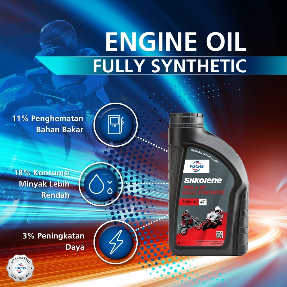 [Mall] FUCHS Silkolene Pro 4 XP 10W40 Oli Motor Fully Synthetic 4T 1L Pelumas Mesin Motor Sport Kuat & Tahan Panas