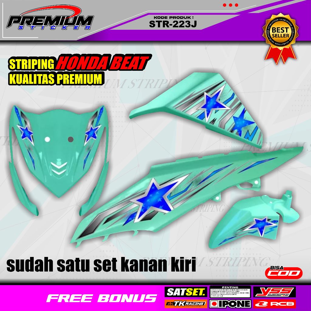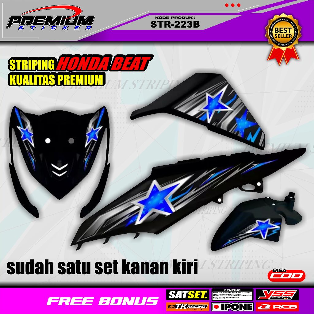 STRIPING MOTOR HONDA BEAT FI DESAIN KEKINIAN KEREN TERBARU VIRAL KEREN / HOLOGRAM VINYL UV / STR-223