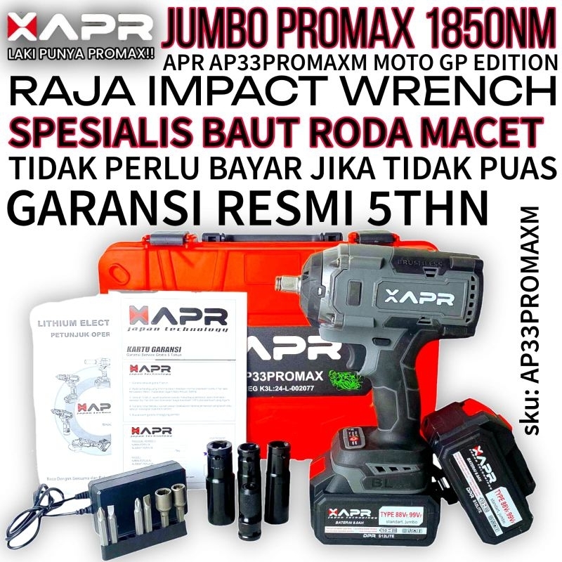 TERBARU impact wrench APR jumbo PROMAX AP33 GP edition 1850nm 1/2inch 2baterai 10cell 99v ORIGINAL XAPR