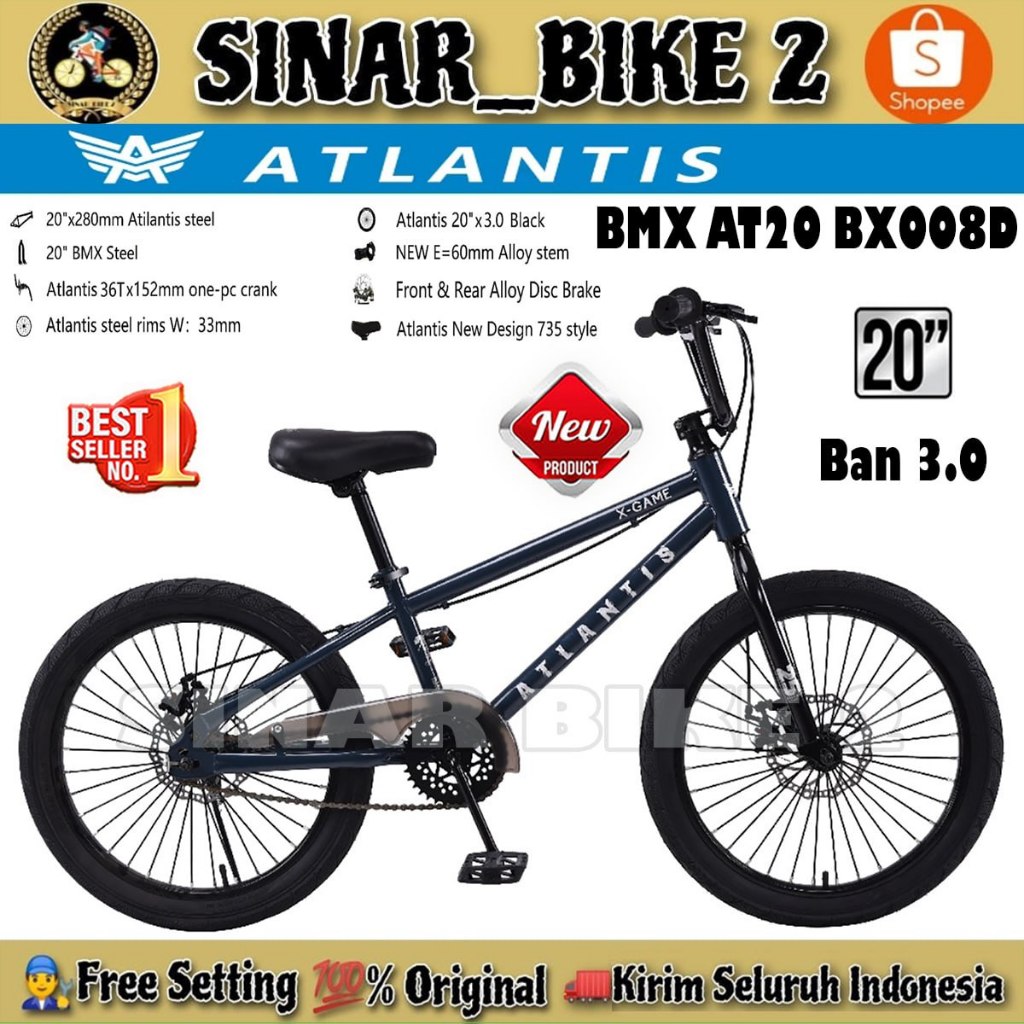 Sepeda Anak Laki BMX ATLANTIS AT BX 008 DB CAKRAM Ban Jumbo 3.0 Rem Cakram Ukuran 20 Inch Usia 8-11 Tahun