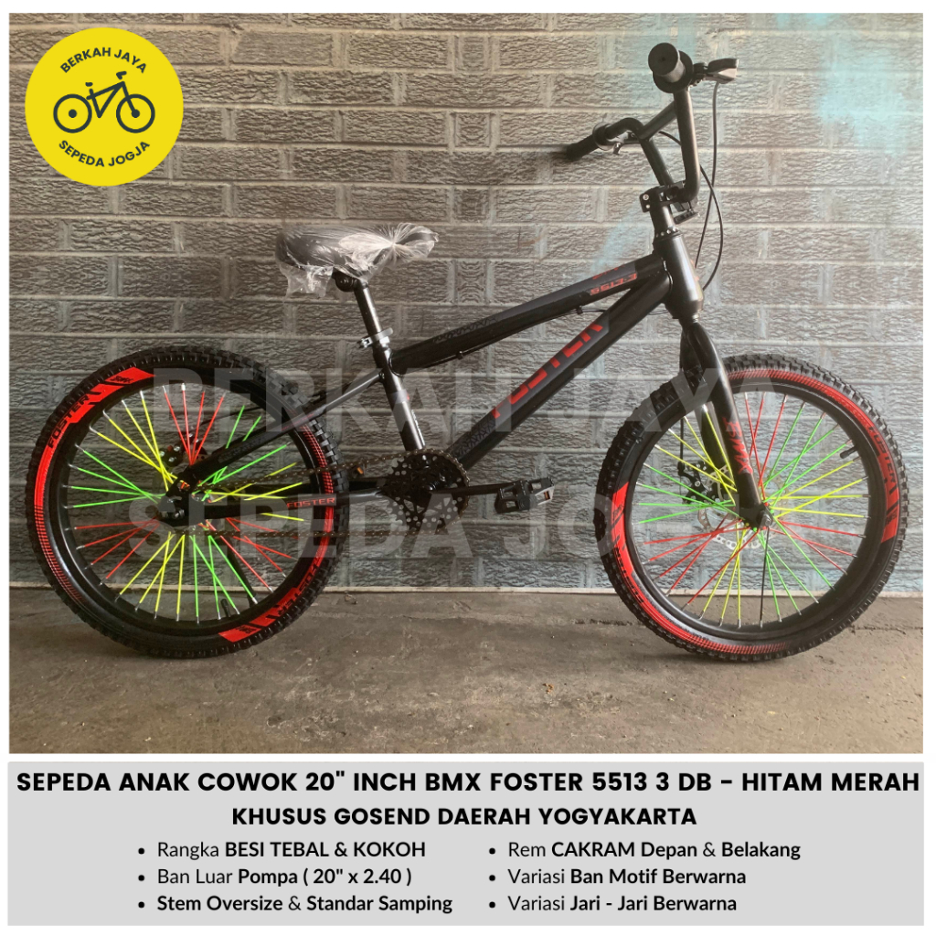 Sepeda Anak Cowok BMX 20 inch Foster 5513 3 DB Oversize Rem Cakram Ban 2.40 Ruji Warna