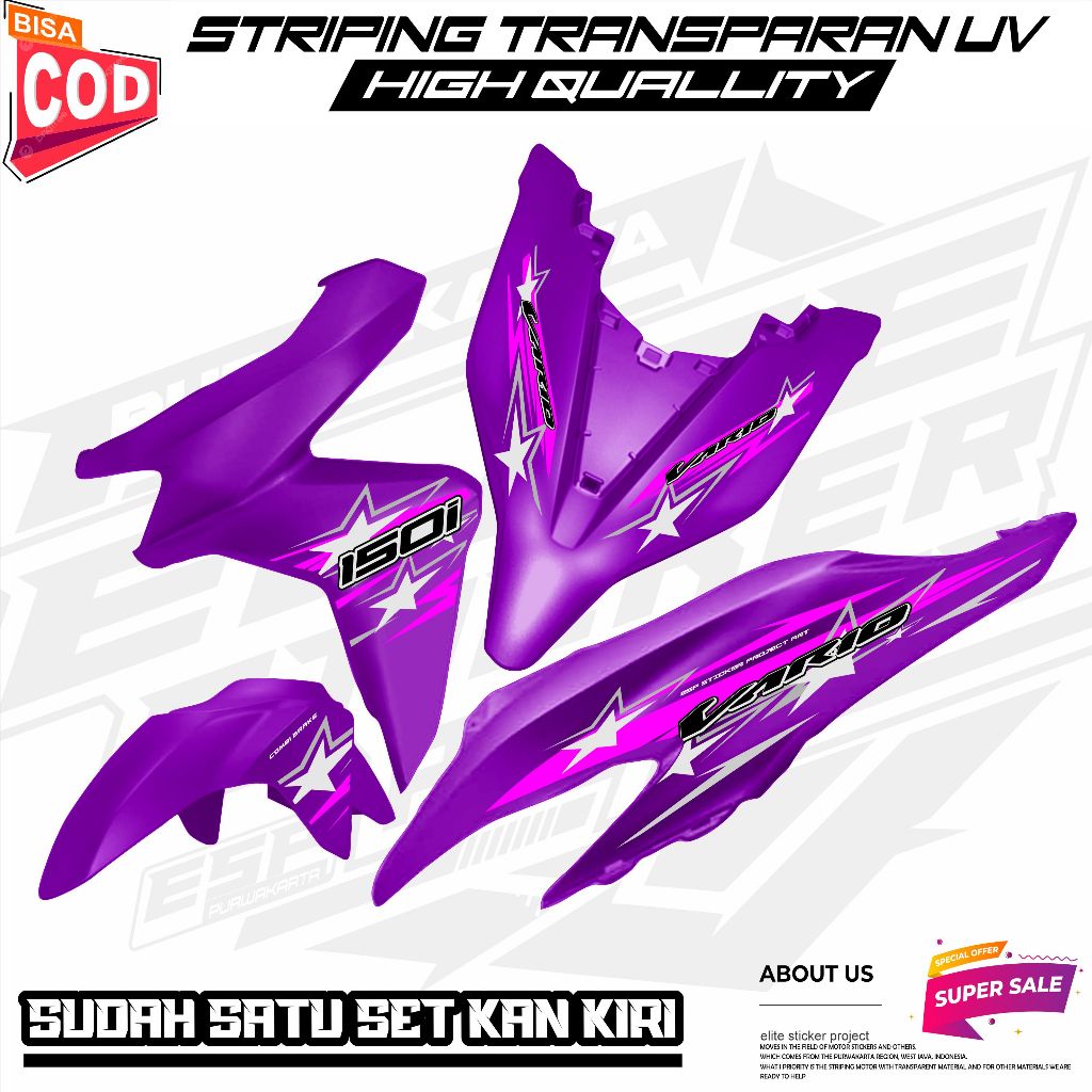 STRIPING TRANSPARAN VARIASI 22 HONDA VARIO LED NEW 2020 STICKER MOTIF BINTANG KEREN