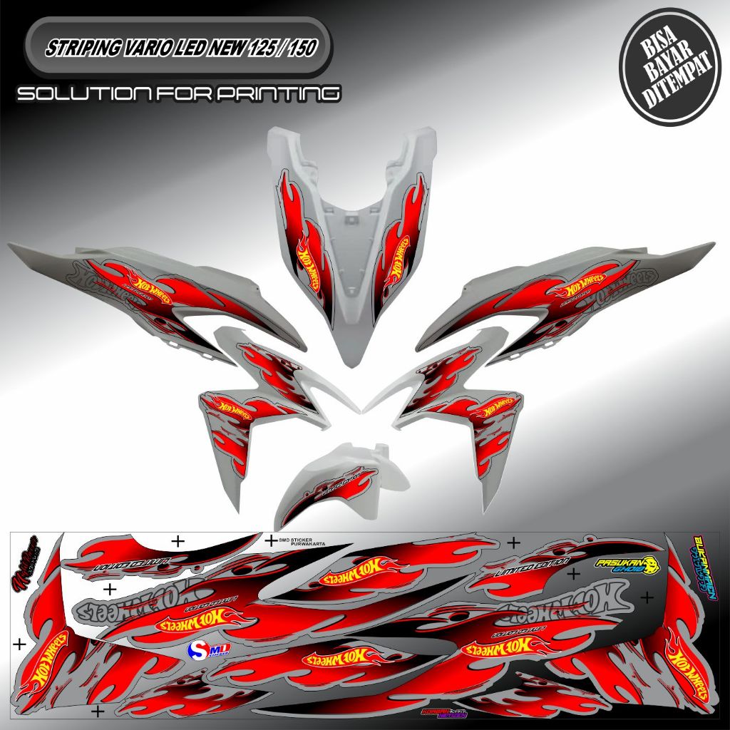 STRIPING STICKER VARIASI VARIO LED NEW 150/125 MOTIF API HOTWHLEES