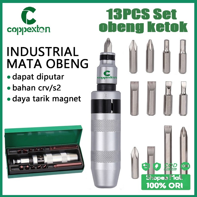 Coppexton Obeng ketok set 13pcs Obeng Set Putar set S2 Drill bit bahan non-karat Impact screwdriver set Box besi Obeng K