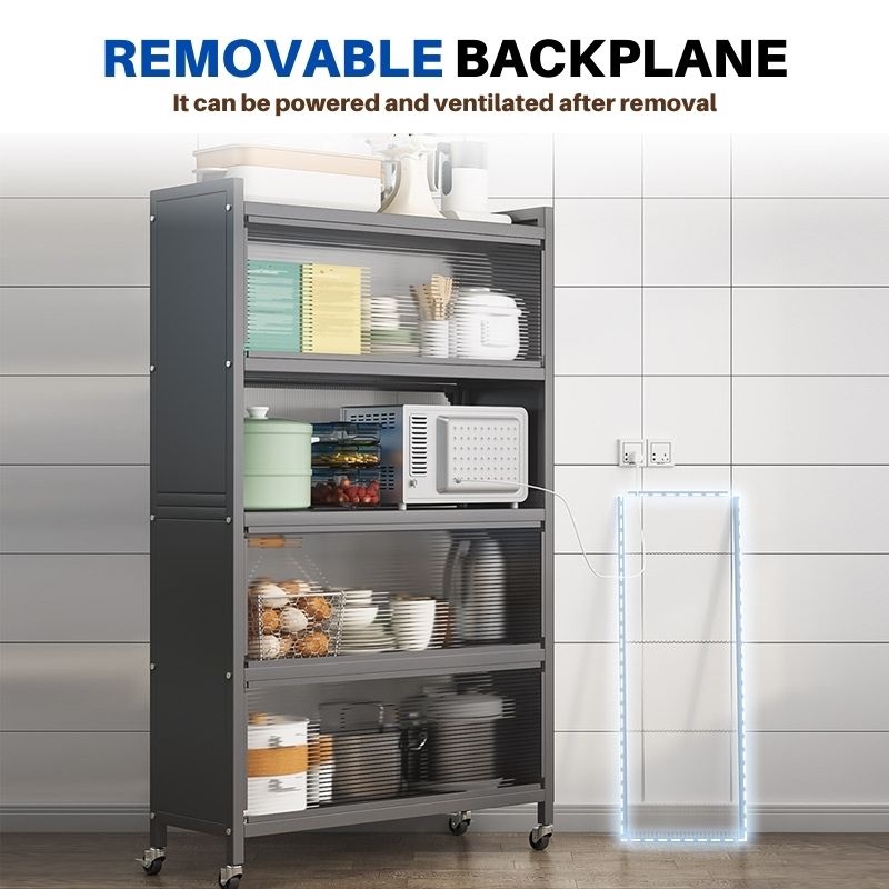 [Mall] RAK PIRING KACA KERAMIK MULTIFUNGSI PINTU GESER & RODA PENYIMPANAN MICROWAVE MINIMALIS MODERN MURAH