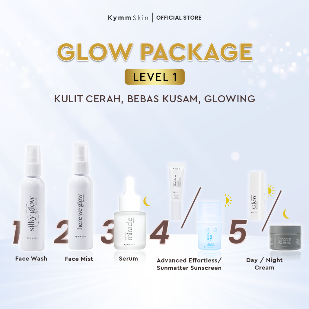[Free Pouch] KYMM SKIN Glow Package LEVEL 1 with Bakuchiol Serum [FW 60ml, FM 60ml, Serum 20ml, Day Cream 10gr, Night Cream 10gr] | Paket Glowing Premium