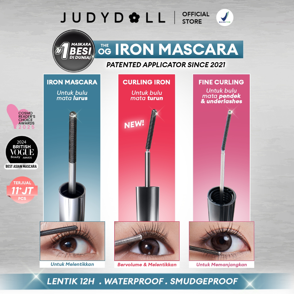 (BARU) Judydoll Curling Iron Mascara (Maskara Besi Waterproof, Smudgeproof, Anti Clumpy, Hasil Lentik Natural Tahan Lama 12 Jam)