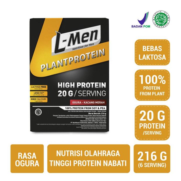 L-Men Plant Protein Ogura 216 gram - Suplemen Tinggi Protein Nabati Rendah Lemak Plant Based Vegan Lactose Free