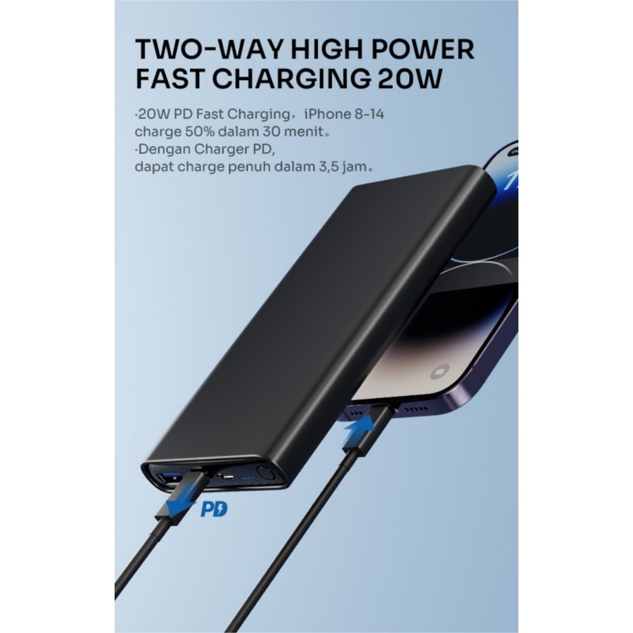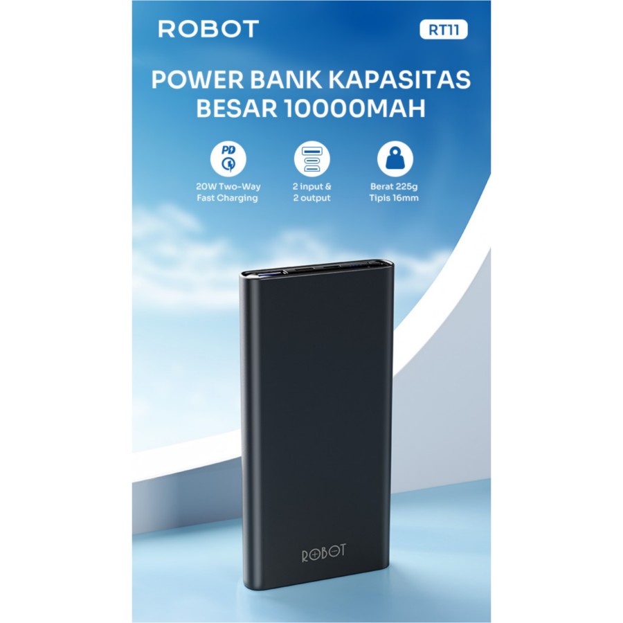 [ POWERBANK RT11 ] FAST CHARGING ROBOT RT11 Powerbank Slim 10000mAh 20W 3A PD QC 3.0 USB C Fast Charge