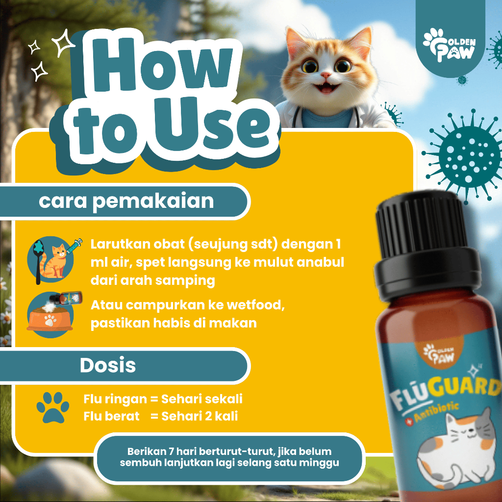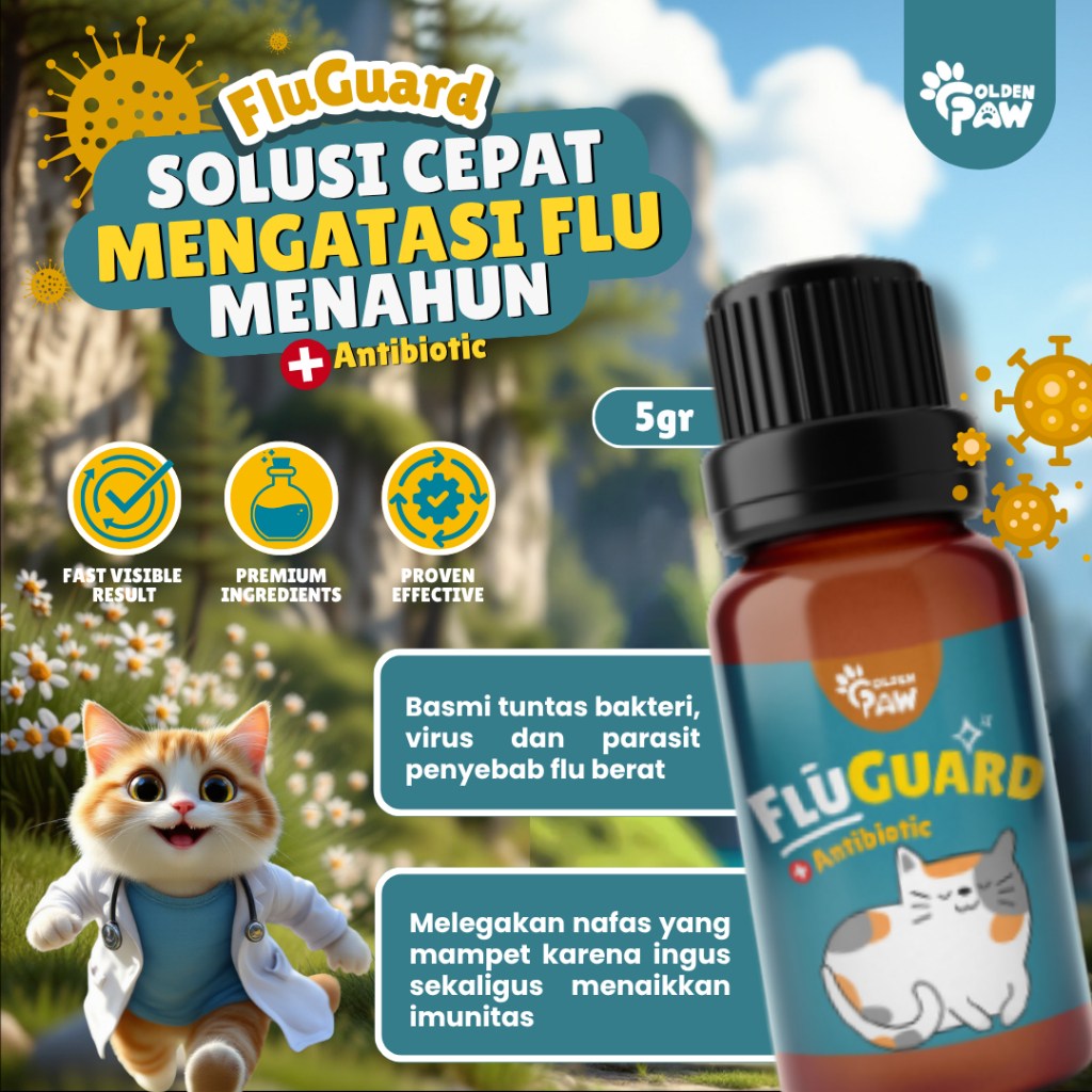 Obat Kucing Flu Berat Golden Paw Fluguard 5Gr Demam Pilek Bersin Ampuh Cepat