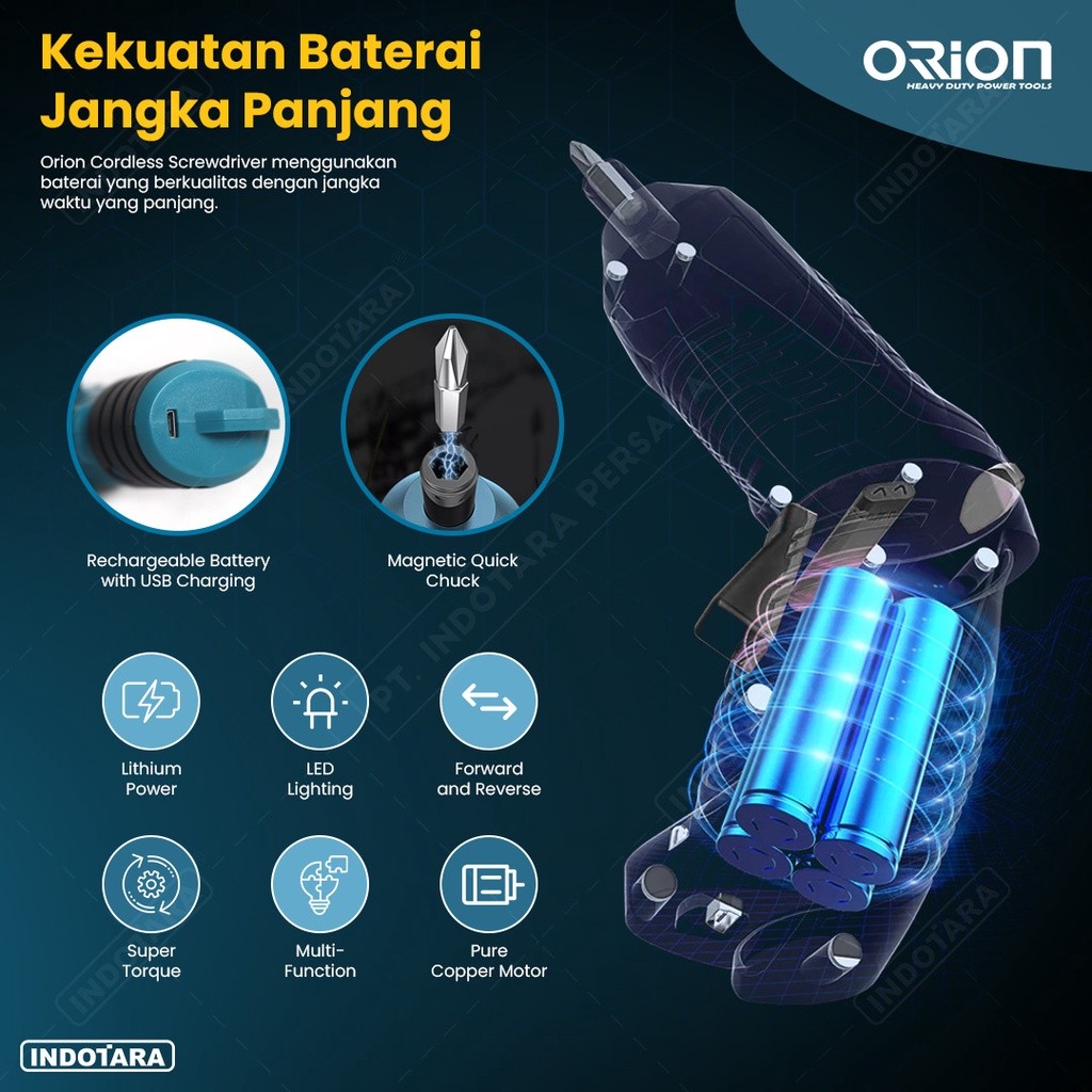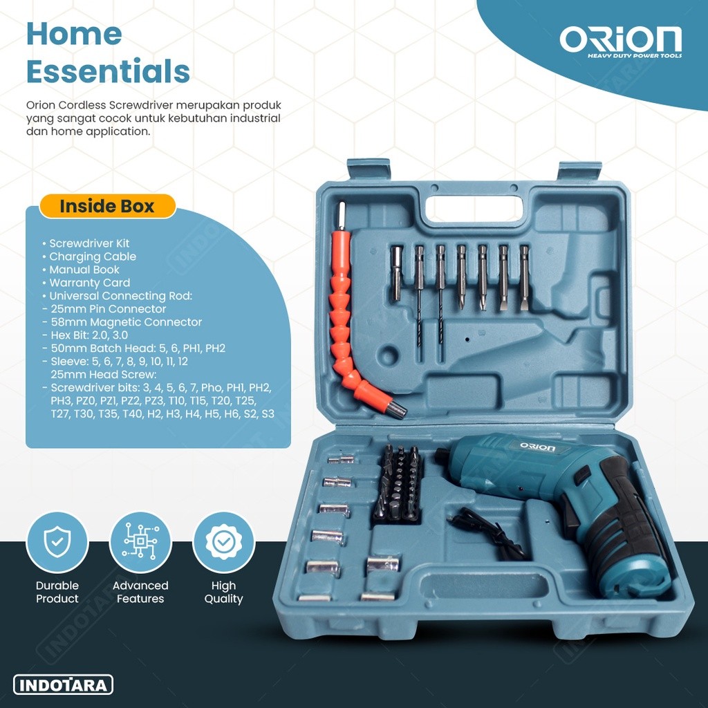 Orion Cordless Screwdriver 3.6 V Mesin Bor Baterai Impact Cordless Drill 48 Pcs Set Screwdriver Baterai Bor Mini Obeng R