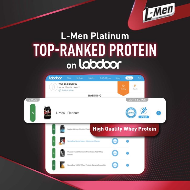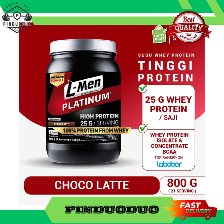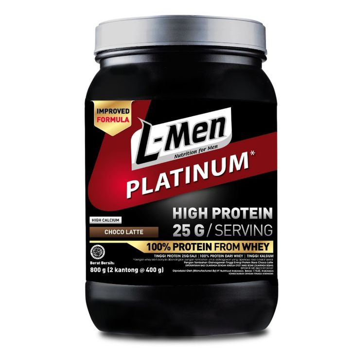 L-Men Platinum Choco Latte 800gram (25 g protein/serving) -1,7 lbs- Suplemen Tinggi Whey Protein Rendah Lemak