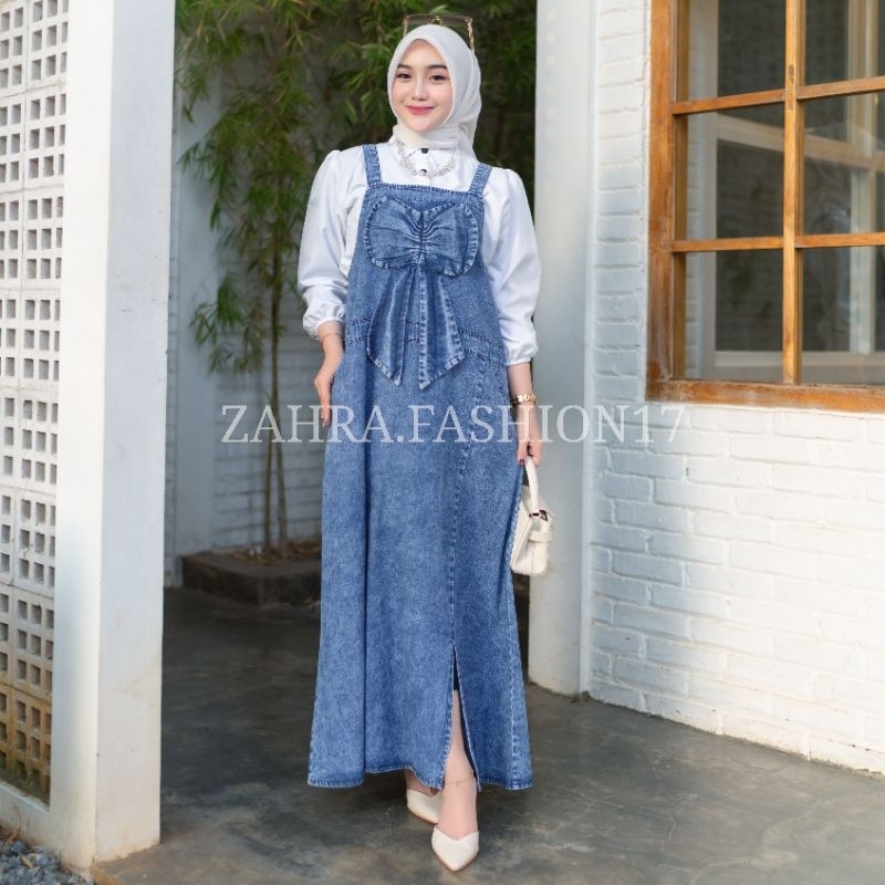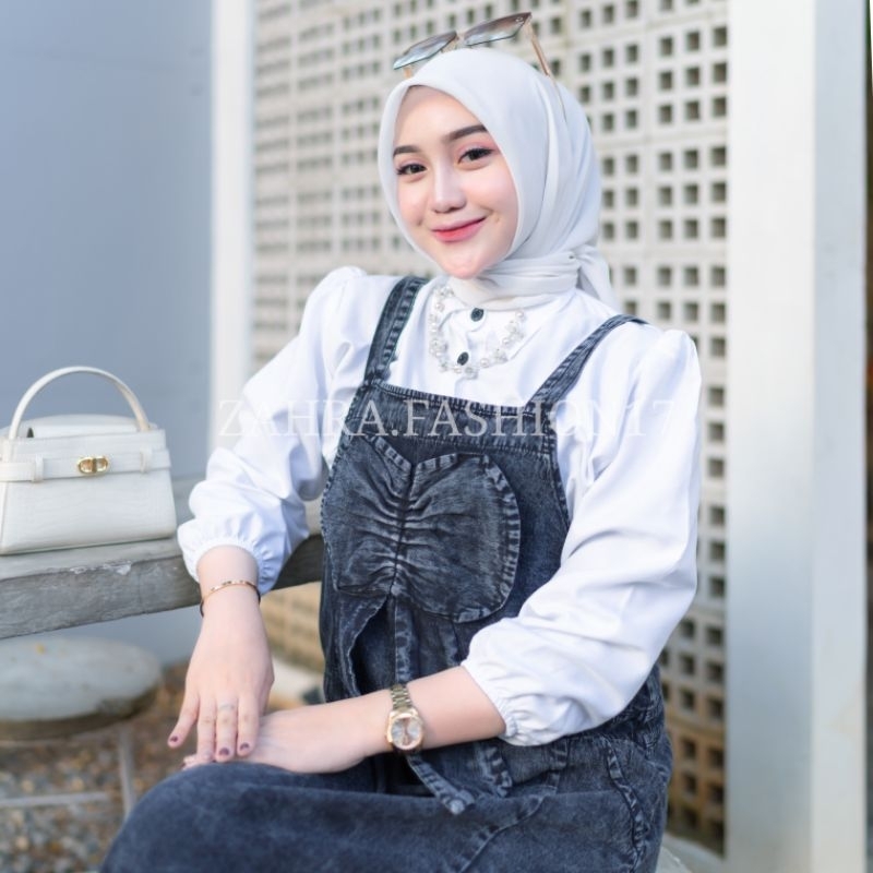 Zahra Overall Set Jeans Wanita dan Remaja Terbaru Viral Model Kekinian Cantik Nyaman Soft Denim