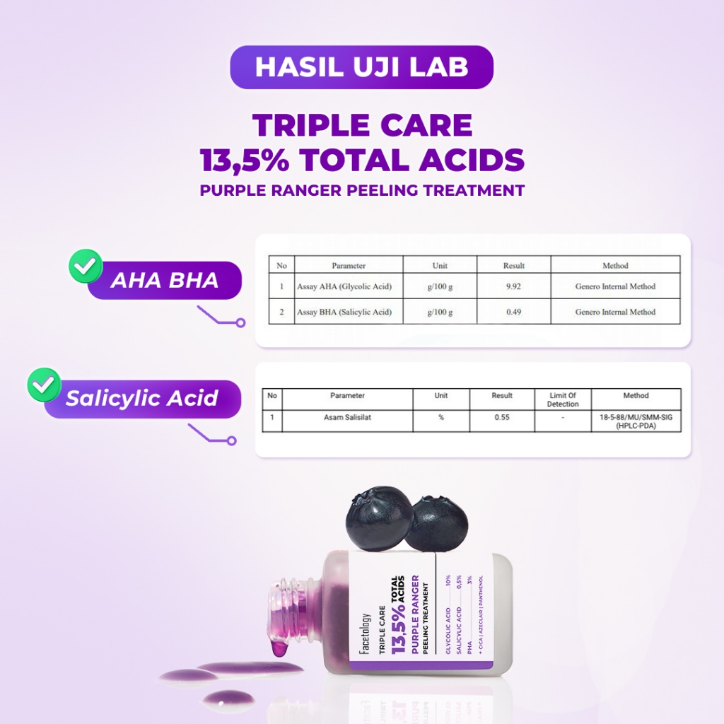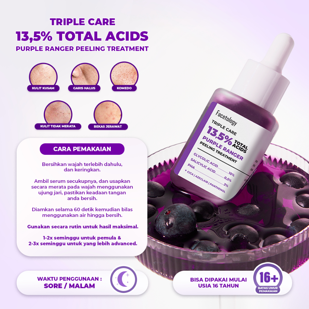 FACETOLOGY Triple Care 13.5 PERSEN Total Acids Purple Ranger Peeling Treatment Serum mengandung glycolic sebagai exfoliating bantu bersihkan wajah dan komedo