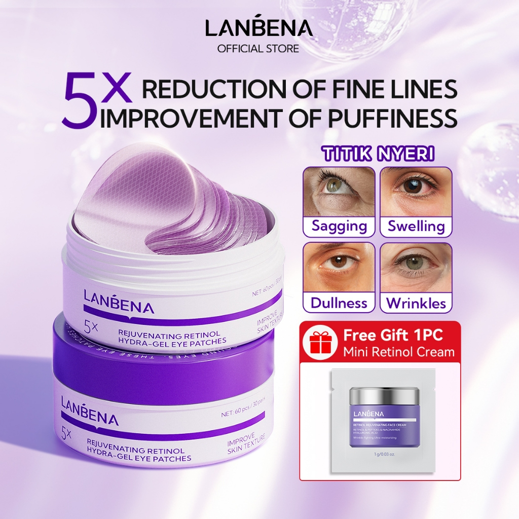 [BUY 1 FREE 1] LANBENA Masker Mata Retinol Anti Aging + Cerahkan Lingkaran Hitam - Eye Patch Kolagen Melembapkan Eye Cream Eye masker wajah Skincare (60Pcs/30Pairs)