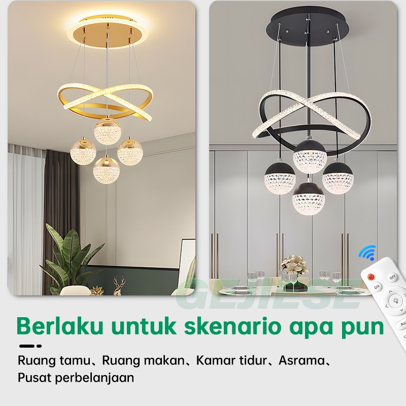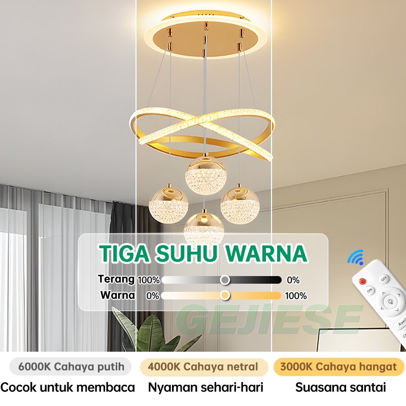 GEJIESE Lampu Gantung Minimalis Kristal Lampu Gantung Ruang Tamu Kamar Tidur 3Warna Mewah Lampu Hias
