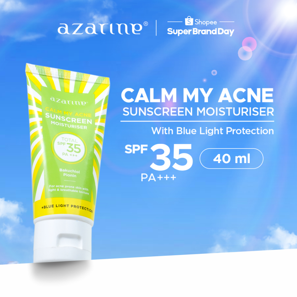 Azarine Calm My Acne Sunscreen Moisturiser SPF35 PA+++ [LOLOS UJI INVIVO INVITRO] Sunscreen Gel Untuk Kulit Berminyak Berjerawat Sensitif 40ml
