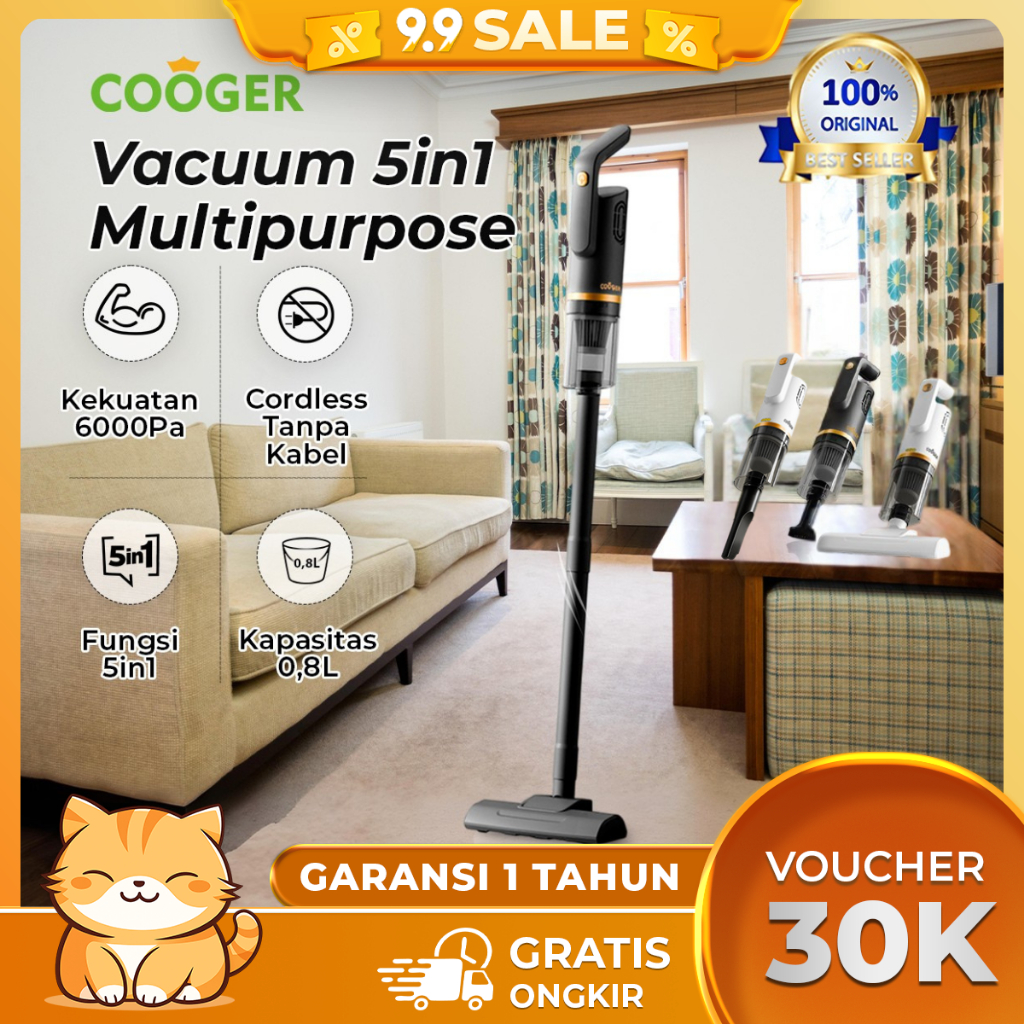 COOGER Vacum Cleaner 5IN1 Vacuum Lantai Penyedot Debu 5IN1 Dengan Gagang Panjang Hijau Alat Penyedot Debu Serbaguna Penyedot Debu Lantai