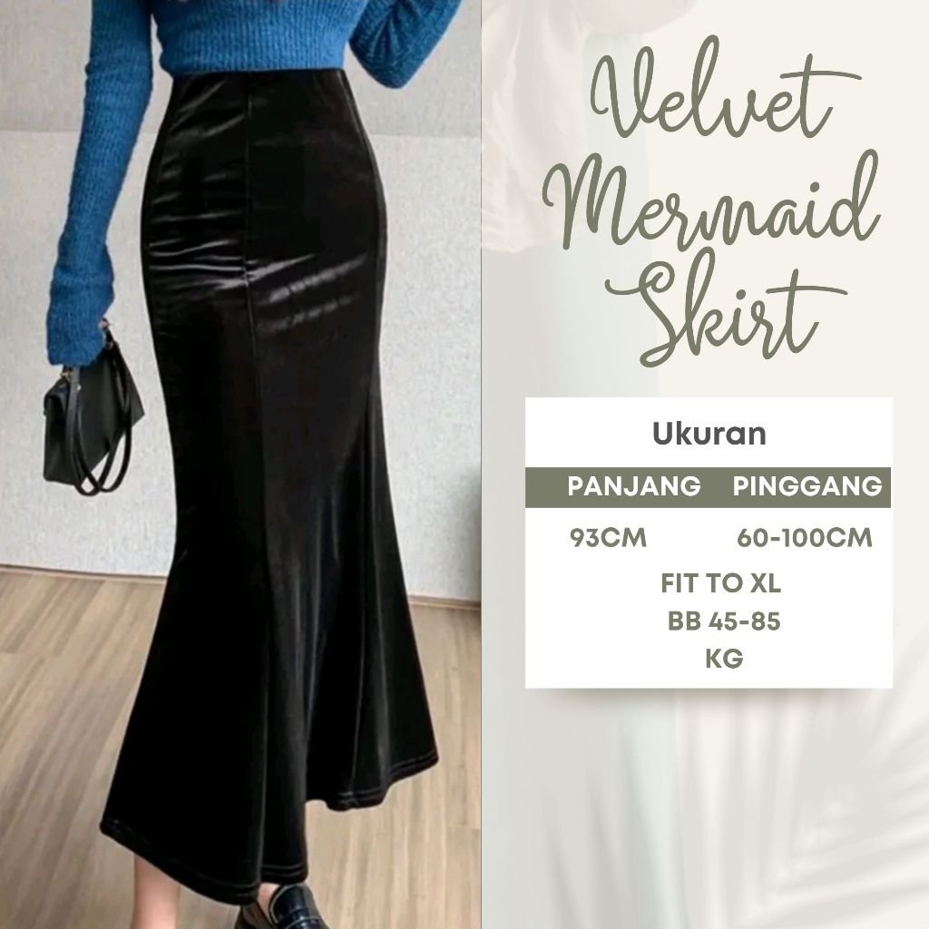 Rok Panjang Mermaid Bludru Premium XL - Desain Fit & Flare Elegan & Nyaman