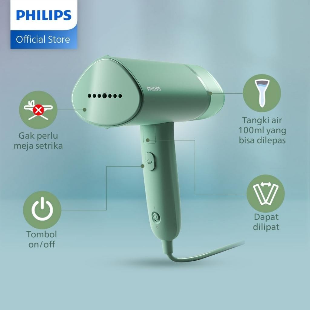 Philips Handheld Steamer STH3010/70 Hijau - Setrika Uap Philips Strika Uap Portable Dapat Dilipat