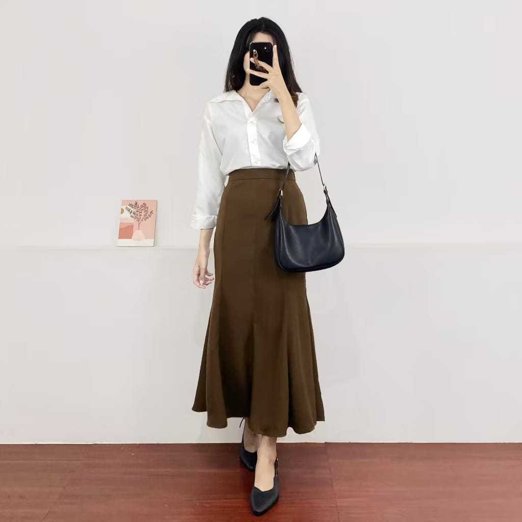 Rok Panjang Flare FAMOLA Audy - Korean Style Maxi Skirt Scuba Anti Kusut