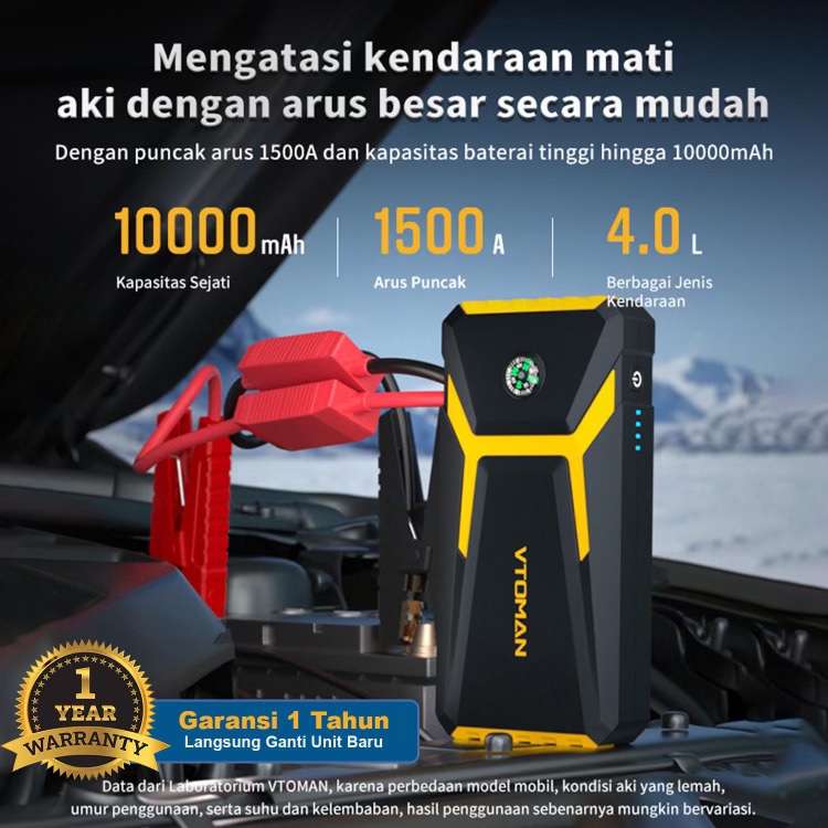 VTOMAN V6 PRO 10000 mAh Jump Starter Aki Mobil Motor Power Bank Jumper Aki Alat Jamper Aki Power Bank Mobil Jemper Aki Portable Jump Starter Aki Jumper Aki Mobil Powerbank Jumper Aki Mobil Portable