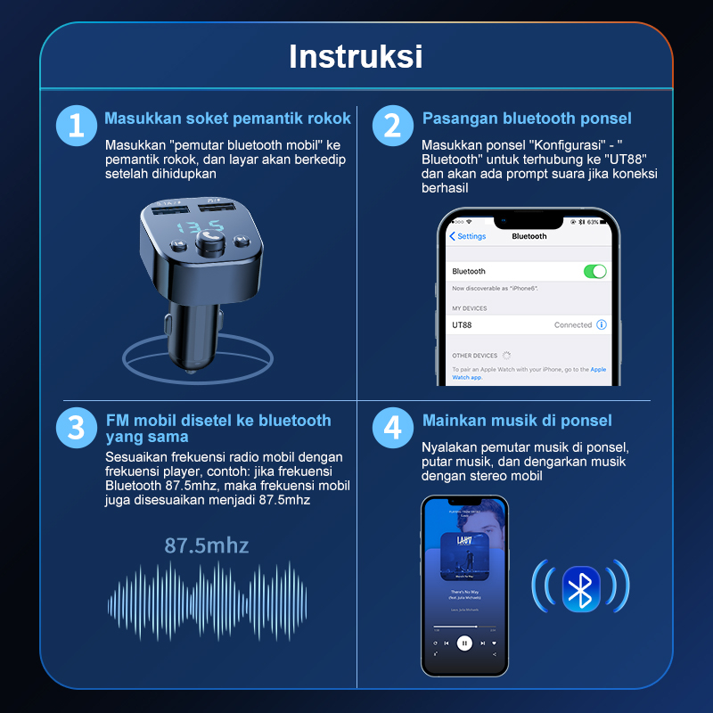(HOT)KIVEE Car Charger Mobil fast charging Dual USB+MP3 Player Aksesoris Mobil Bluetooth Transmitter