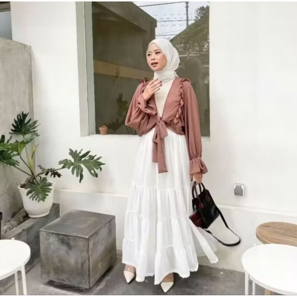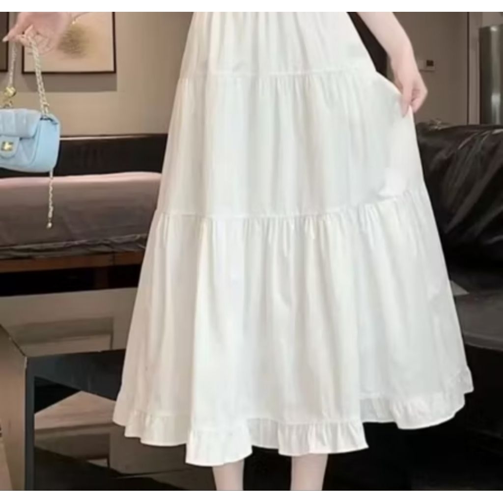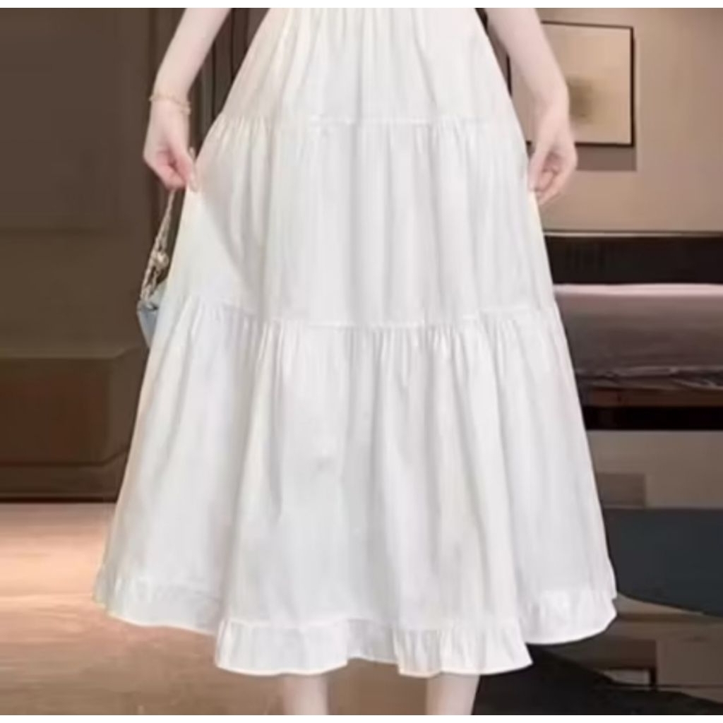 ROK RUFLA MIDI SKIRT CERUTY FULL FURING JUMBO PANJANG PREMIUM EKSKLUSIF WANITA TERBARU