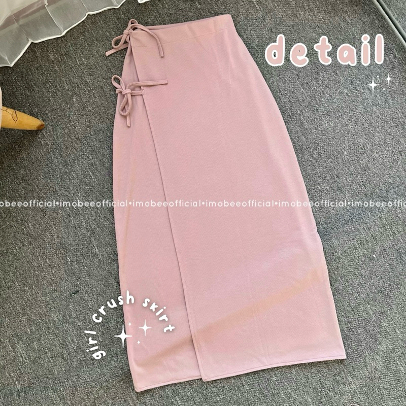 Imobeeofficial | GIRL CRUSH COQUETTE SKIRT Rok Tali Ikat Pita Aesthetic Wanita Knit Korea