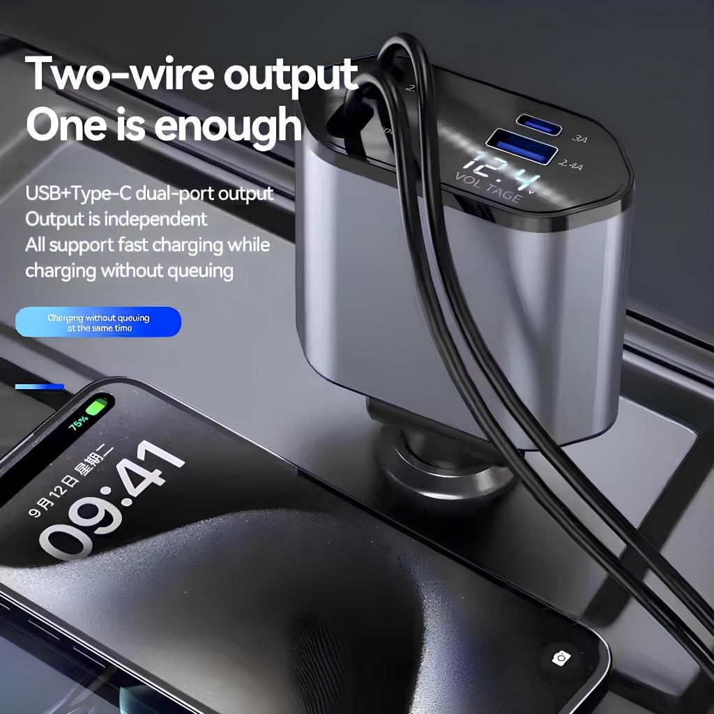 UPLU 120W Fast Charging Car Charger Mobil & Motor Rectractable Cable 4 In 1 Type-C Dan Iphone